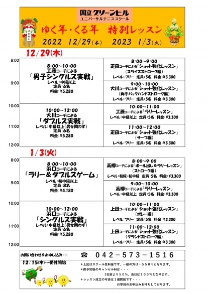 年末年始 特別レッスンのお知らせ