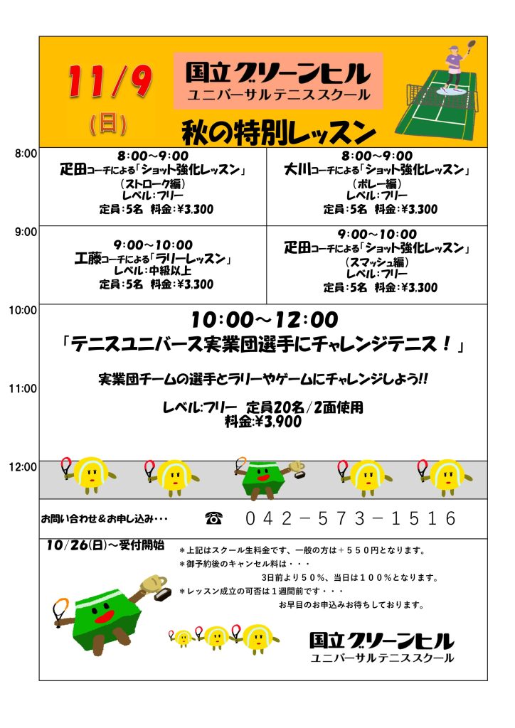 いつも国立グリーンヒルユニバーサルテニススクールをご利用いただきありがとうございます。