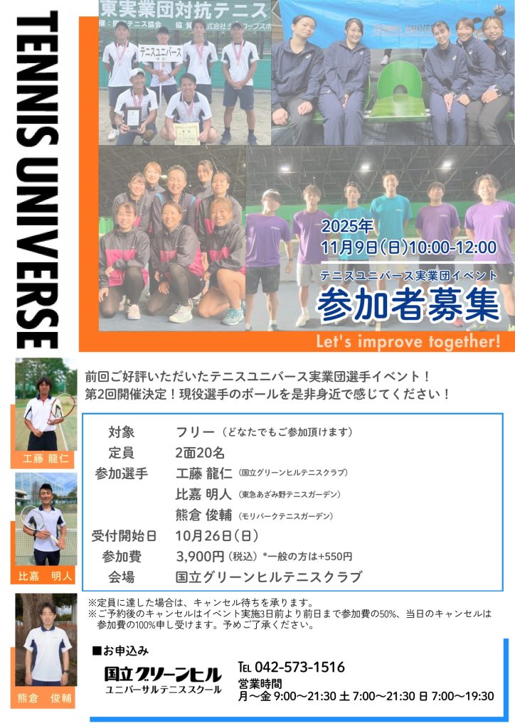 テニスユニバースの実業団選手と一緒に、ラリーやゲームを楽しむレッスンもございます。